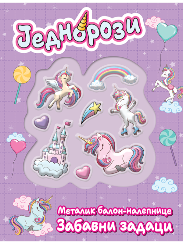 Jednorozi : metalik balon-nalepnice : zabavni zadaci