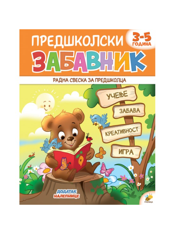 PREDŠKOLSKI ZABAVNIK namenjen je deci uzrasta od 3 do 5 godina i osmišljen da kroz igru podstakne razvoj psiho-motoričkih sposobnosti, pažnje i koncentracije.